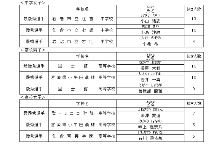 回中学校宮城県剣道選手権大会結果