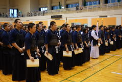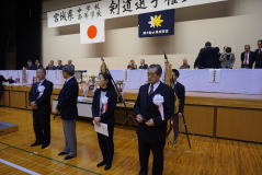 閉会式には優勝した県外の招待校や県内の入賞校が一同に介して表彰が行われました。特に優勝した県外の招待校の表彰式における姿勢態度は、試合時におけるものと同様に大変立派なもので、県内の学校の多くに範を示すものになったことと感じました。この経験が本県の中高生の剣道の技術の向上のみならず、剣道を通しての礼儀作法の習得につながるものと確信したところです。